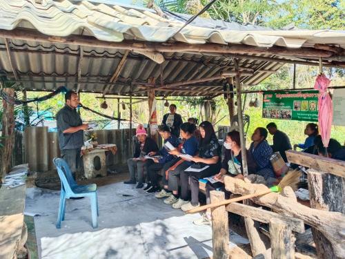 4. การแบ่กลุ่มเรียน/ฝึกปฏิบัติอาชีพแก่ครัวเรือน 3 ฐานเรียนรู้ตามความต้องการของครัวเรือนเป้าหมาย ประกอบด้วย (1) การเลี้ยงไก่พื้นเมือง (2) การเลี้ยงปลานิล ปลาดุก (3) การเพาะเห็ดนางฟ้าและการปลูกผักสวนครัว