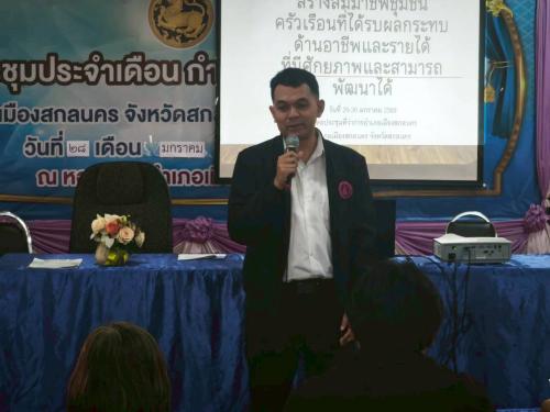 สำนักงานพัฒนาชุมชนอำเภอเมืองสกลนคร: จัดโครงการสร้างสัมมาชีพชุมชนครัวเรือนที่ได้รับผลกระทบด้านอาชีพและรายได้ที่มีศักยภาพและสามารถพัฒนาได้