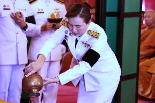 พระบาทสมเด็จพระเจ้าอยู่หัว ทรงพระกรุณาโปรดพระราชทานน้ำหลวงสรงศพถวายแด่ พระราชวชิรมงคลมุนี (หลวงปู่สุธัมม์ ธัมมปาโล) อดีตประธานสงฆ์ วัดเทพกัญญาราม โดยมีพระเทพวชิรรังสี เจ้าคณะจังหวัดสกลนคร (ธ) เป็นประธานฝ่ายสงฆ์ พร้อมด้วยคณะสงฆ์ นางรณิดา เหลืองฐิติสกุล ผู้ว่าราชการจังหวัดสกลนคร เป็นประธานพิธีสรงน้ำหลวงอาบศพ พร้อมด้วย หัวหน้าส่วนราชการจังหวัด อำเภอ กำนัน ผู้ใหญ่บ้าน ประชาชนในพื้นที่ ตลอดจนศิษยานุศิษย์ ร่วมพิธีสรงน้ำและสักการะสรีระสังขาร ด้วยความอาลัย