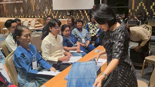 2. การอบรมพัฒนาศักยภาพผู้ผลิต ผู้ประกอบการ OTOP (Coaching) ในรูปแบบ Workshop (1) เทคนิคการจับคู่สีตามเทรนบุ๊ค (Thai Textiles Trend Book) (2) เทคนิคการออกแบบลายพระราชทาน (3) เทคนิคการออกแบบผลิตภัณฑ์ด้วยการใช้เส้นใจและวัสดุธรรมชาติ (4) การพัฒนาผลิตภัณฑ์ที่เป็นมิตรต่อสิ่งแวดล้อม (5) กลยุทธ์ทางการตลาดและจำหน่าย (Maketing & Sale) (6) การต่อยอดภูมิปัญญาผ้าและงานหัตถกรรม