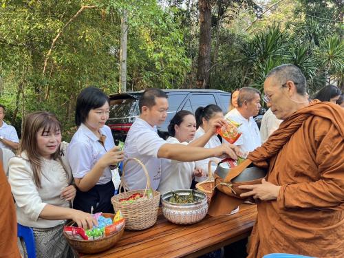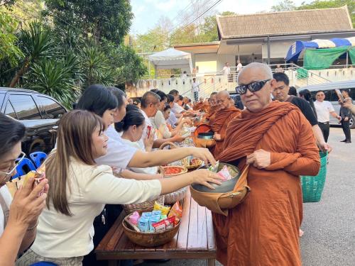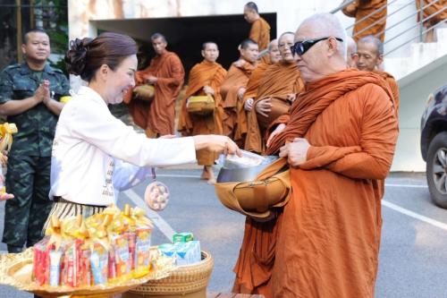 ในวันนี้ได้จัดพิธีทำบุญตักบาตร และถวายภัตตาหารแด่พระสงฆ์ และถวายผ้าป่า โดยมีพระอาจารย์สุธรรม สุธมฺโม เป็นประธานพิจารณาผ้าป่า พร้อมทั้งทำพิธีมอบเงินรายได้จากการทอดผ้าป่าให้แก่ผู้ว่าราชการจังหวัดสกลนคร เพื่อนำไปดำเนินการตามวัตถุประสงค์ของโครงการ "บ้านตุ้มโฮม ปันสุข" มีเป้าหมายในการสร้างบ้านใหม่ให้กับผู้ยากไร้ ผู้สูงอายุ และผู้พิการในจังหวัดสกลนครที่มีสภาพที่อยู่อาศัยทรุดโทรมจนไม่สามารถซ่อมแซมได้ โดยตั้งเป้าดำเนินการให้ครบ 200 หลัง ภายในปี พ.ศ. 2569